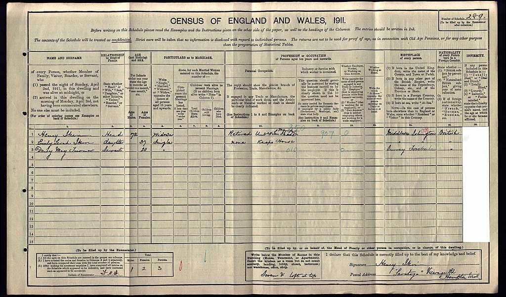 1911 Census Schedule # 289